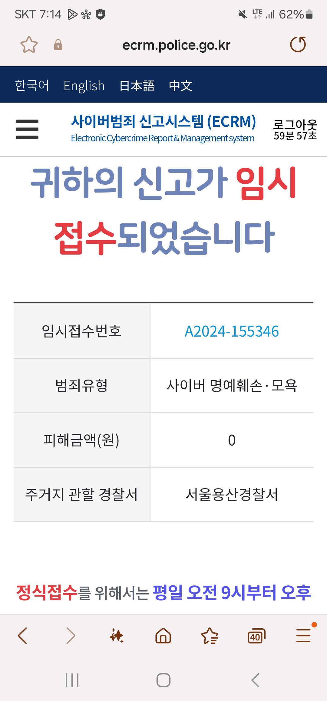 결정적인 계기는 최근 10월28일에 한 분이 나우톡에서 명예훼손으로 고소를 하였고 가해자의 아버지가 연락이 왔다 정보를 알게 되었고 그래서 바로 나도 경찰서에 가서 정식 접수를 접수했다.